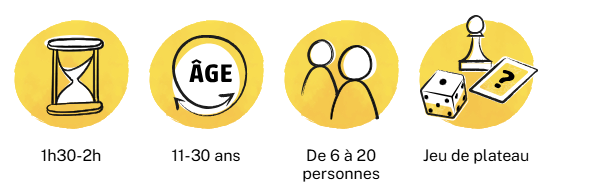 L’outil se présente sous forme d’un jeu de plateau, l’animateur organise la séance autour de questions sur l’un des 6 thèmes proposés afin de créer des débats. Le groupe « gagnant » est celui qui aura répondu le premier à 2 questions par thème et aura réalisé 2 défis.
